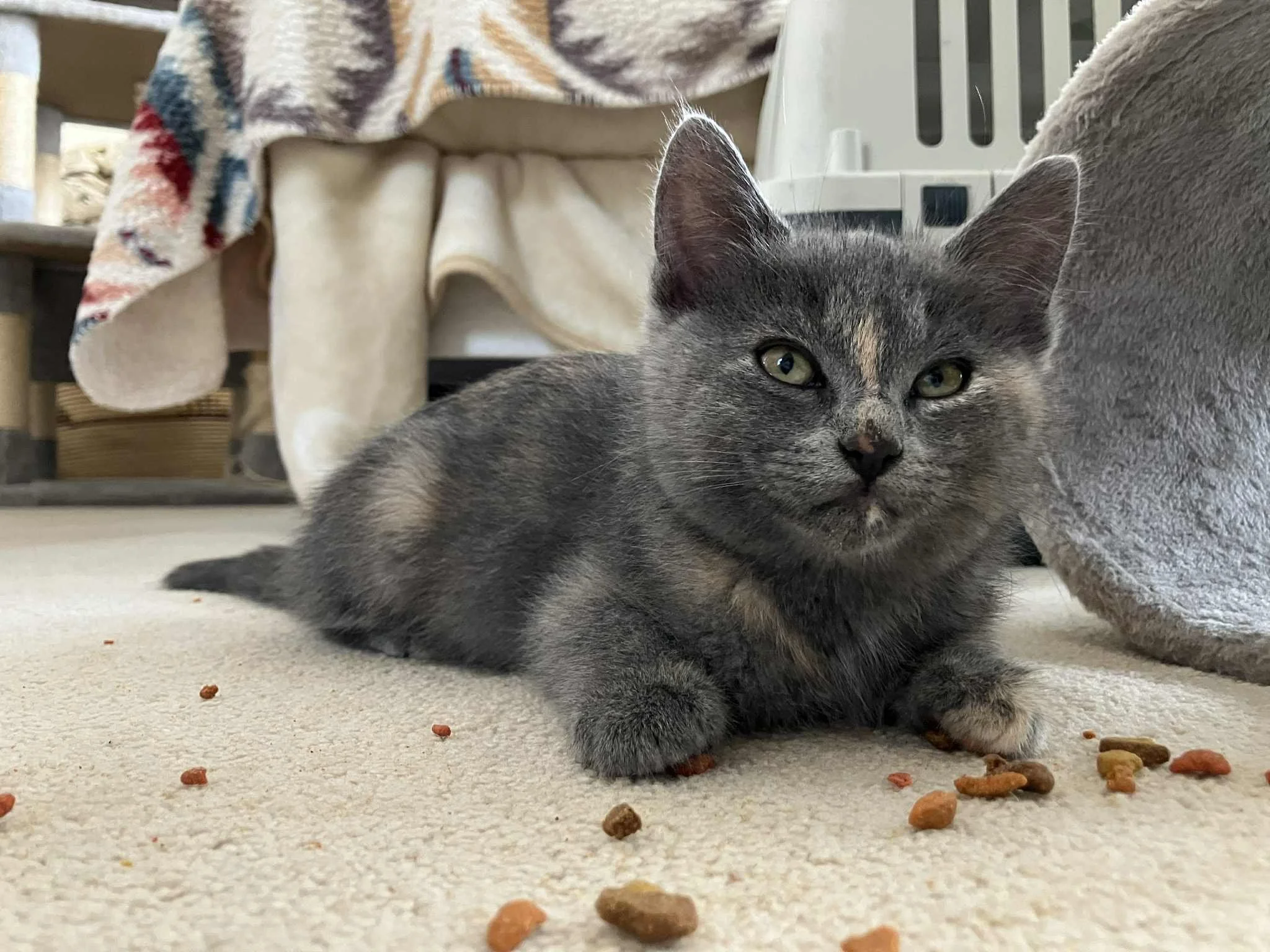 Calypso was the first one of the siblings to jump on and climb high up on the cat tower. She loves exploring and seems to be a bit of a loner as she does not mind playing on her own or taking a nap all on her own. That demeanour also carries over to her behaviour towards humans: she will calmly observe you from afar, gently staying just outside your reach, and observe if the human can be trusted. She does not like it if a human suddenly tries to catch her when she does not see them first, but she will always allow someone she trusts to pick her up and pet her. And if she decided that the human can be trusted, then she will find nothing wrong with taking her “alone nap” on the human’s lap! Her calm and royal demeanour sets her apart as a very “special” cat.