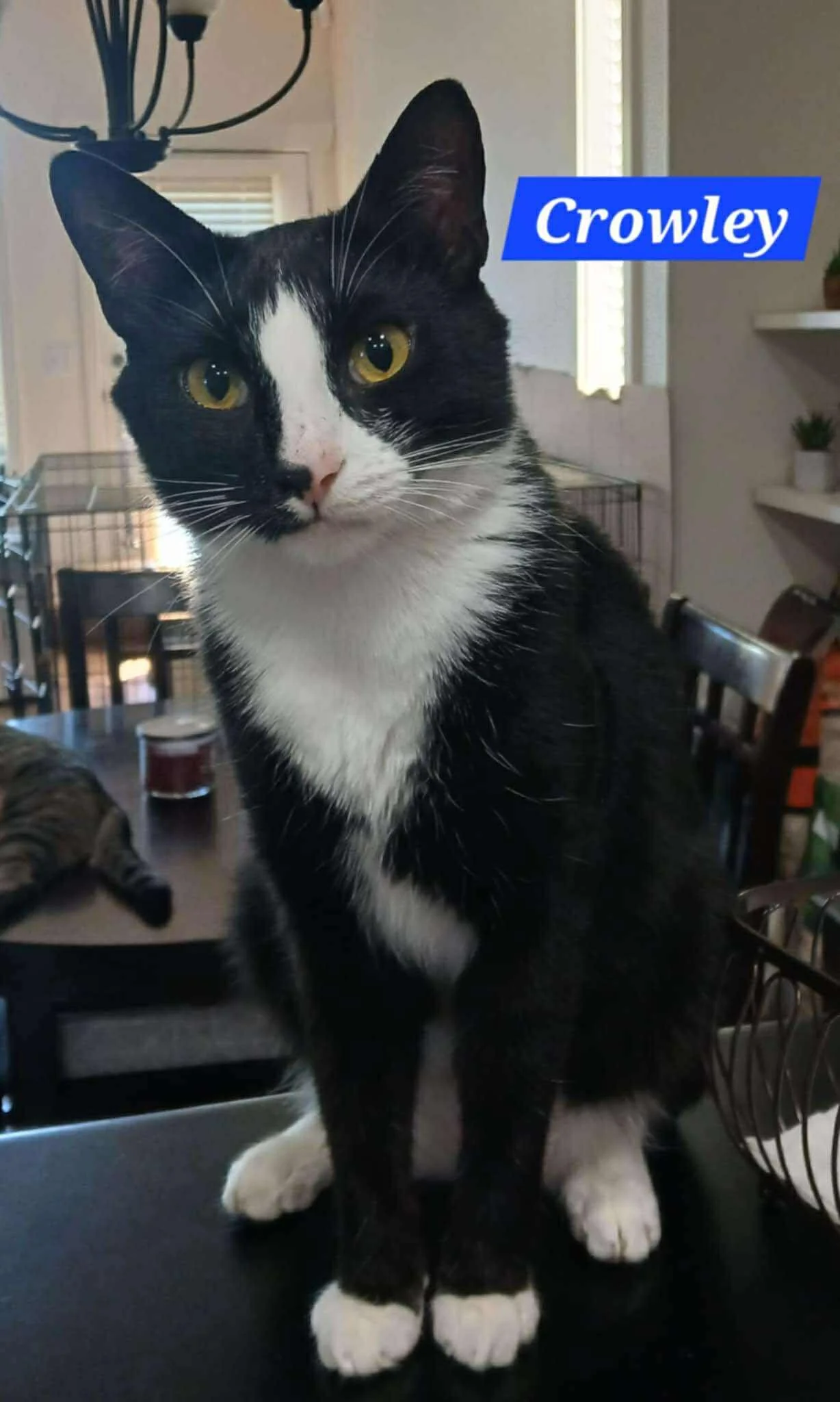 Crowley is a cat that likes to just sit and watch you, no matter what you're doing he will just stare at you with the sweetest look on his face. It's like you can see the love he has in his eyes when he stares at you.