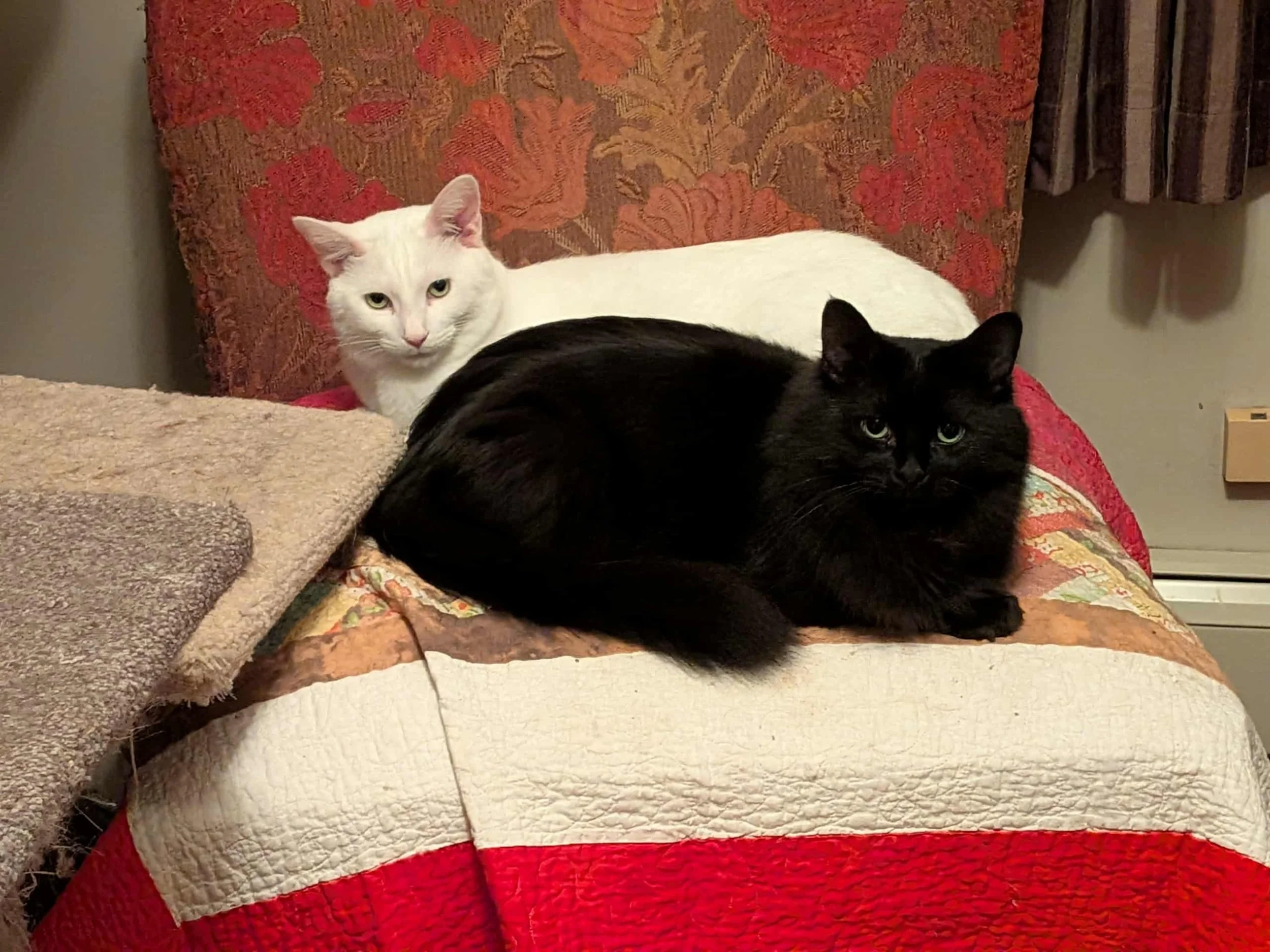Elly is proud & reserved while Riel is goofy & carefree. These 2 compliment each other in many ways, where one goes the other follows. Riel was a Chinchilla in a previous life I'm sure😉, he loves "sand baths" & will roll around on the floor flirting for belly rubs & full body pets. Elly although not a fan of being picked up, is definitely a lap cat & will stretch out for as much attention as possible. These boys aren't really food motivated but function best with a consistent routine. Shy @ first, it won't take long for these buddies to settle in their furever home together.
