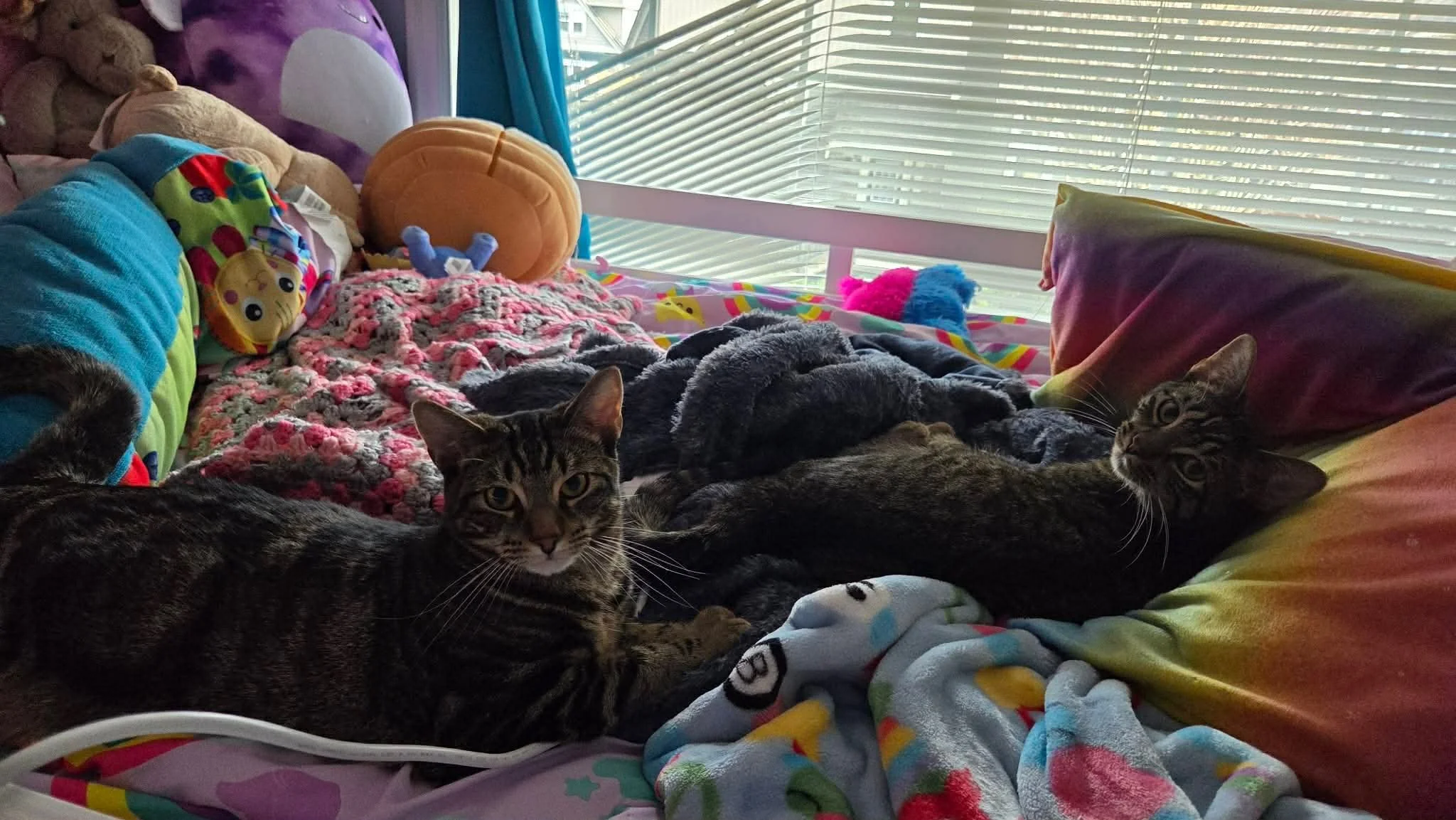 Hiccup, on the other hand, has a slightly more independent style—but don’t be fooled, he’s just as loving. He enjoys affection on his own terms and prefers to snuggle up beside you rather than on top. It’s his sweet, easygoing way of staying close while still keeping things relaxed.