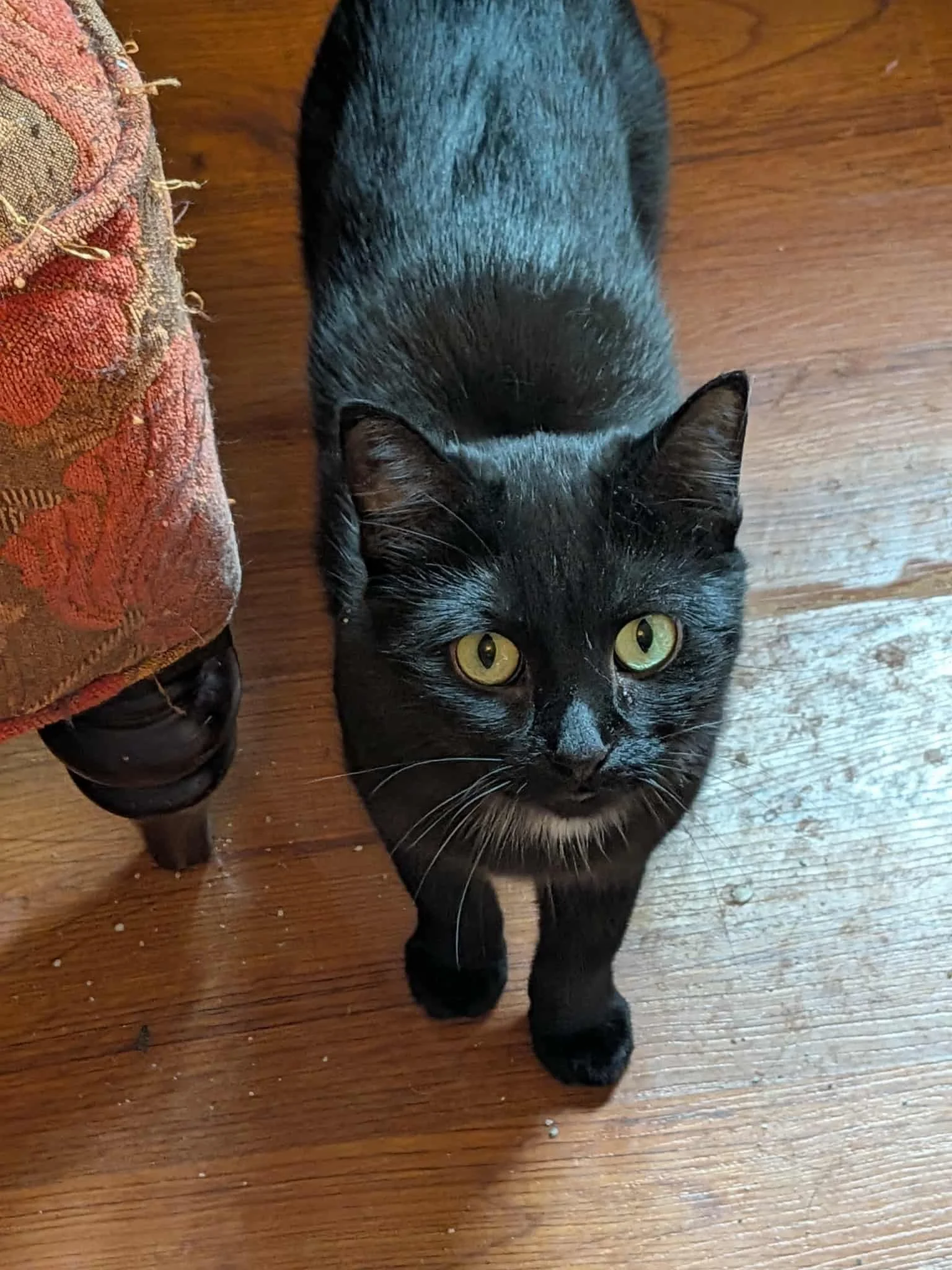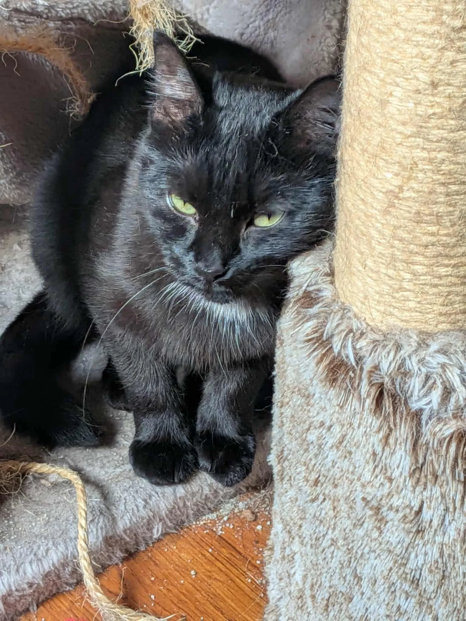 "Somebody open a tin of food already!! I'm starving," said the timid tiny creature lurking under the couch in hidden comforts. "Food motivated" defines affection, head/hand/heart boops. This girl, once hidden in sheer terror from voices, any sound & daylight, has evolved bravely into the most affectionate talkative little fur being. It took many months to win this girl over. Although she tolerates other felines in her habitat she certainly wants nothing to do with anyone but YOU! She aches for attention & tasty tin treats. This sweetheart has taught me so much about the fearful ones. Like a butterfly, with patience & time this tiny creature has completely evolved & longs for a home of her own. She is an amazing companion kitty & will imprint flawlessly into your routine & habitat. Please consider this darling little purrer.