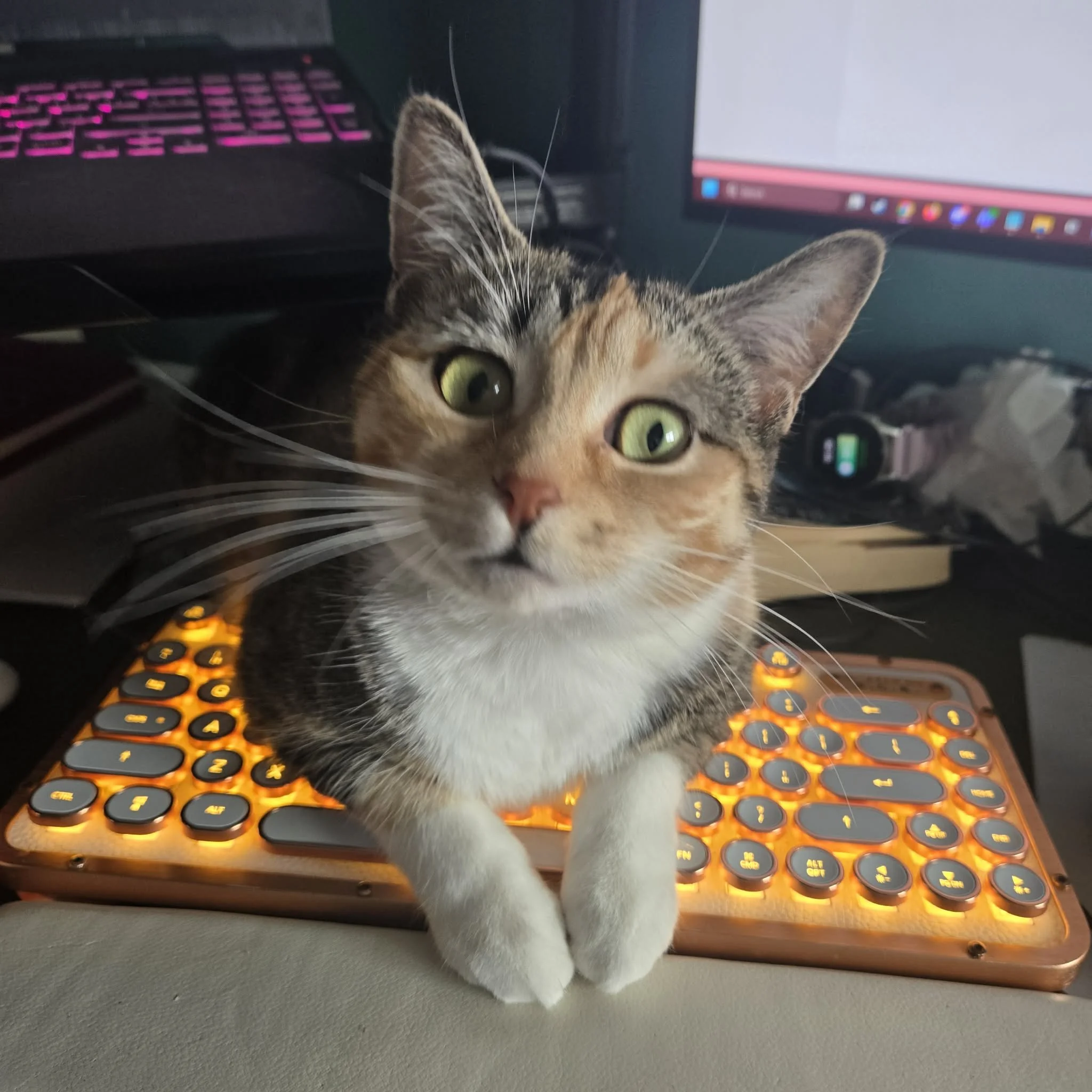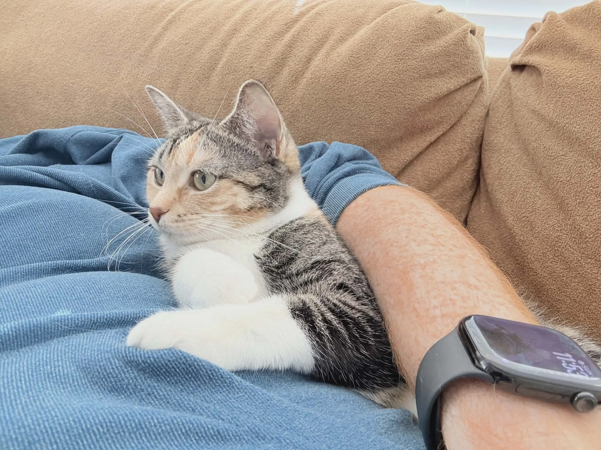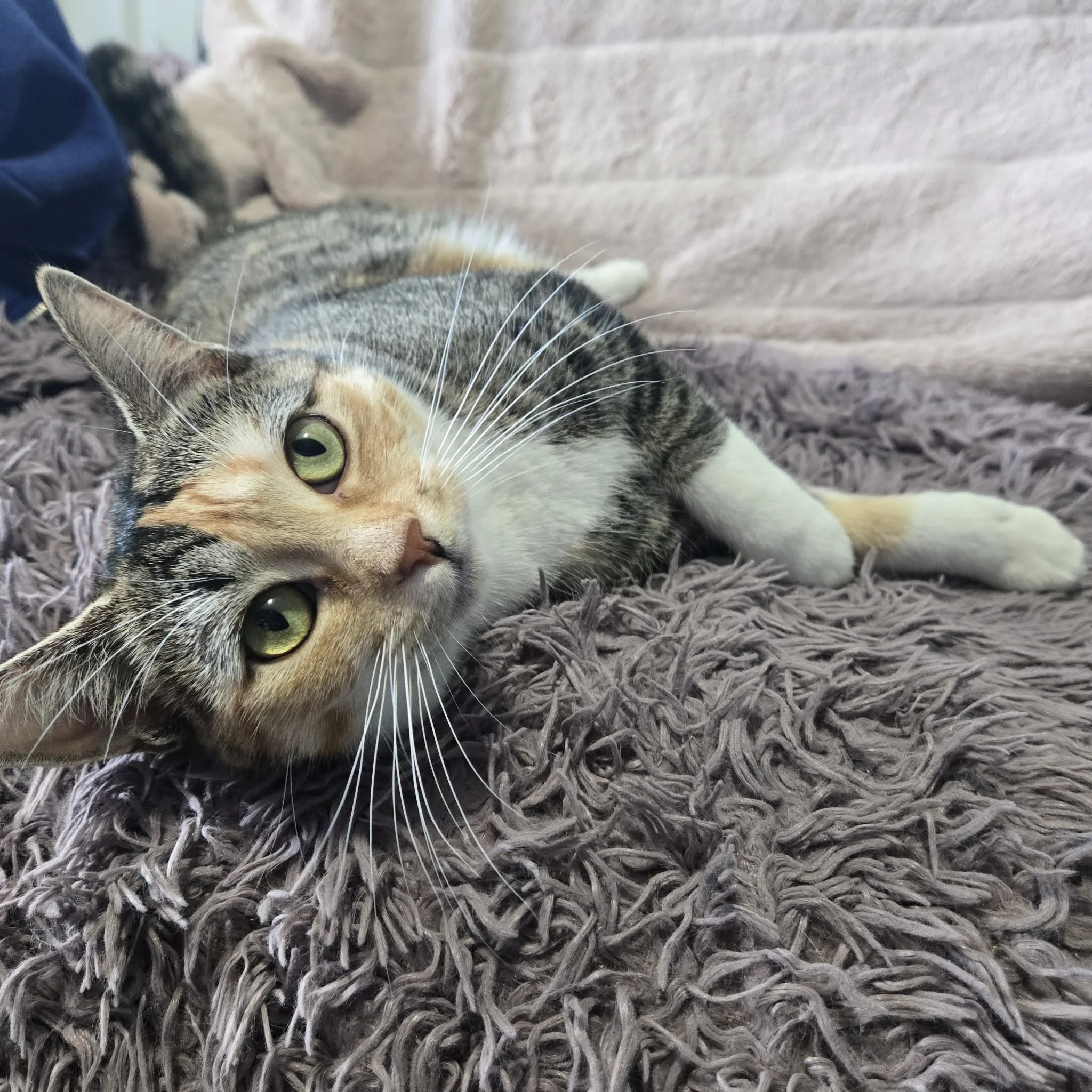 Kahlo is an affectionate, sweet girl. She is very cuddly, and loves to jump on your lap for forehead kisses or snuggle on the couch. She isn't loud, but she will tell you when she wants something, and isn't shy about asking for more attention. When not snuggling, she likes to play, steal pens, and watch wildlife from the window. She is very good about using her litter box and scratching post.