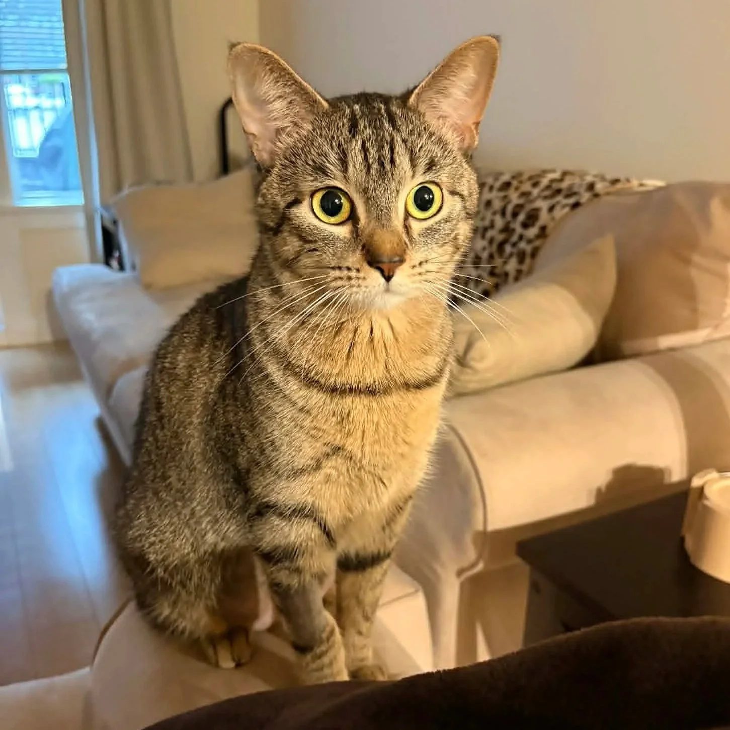 Adoption Fee: $350Maya is a purr machine with endless bounds of love. She adores zooming back and forth through her tunnel and spending time with her scratch post. She loves belly rubs all the time and will happily make biscuits while soaking up all the attention. Maya is gentle, affectionate, and truly loves her humans. She also enjoys watching the world go by from the window, taking in everything around her. She’s perfectly content napping and curling up next to you on the couch, making her an easy and loving companion. She is adorable, playful, and an absolute dream.