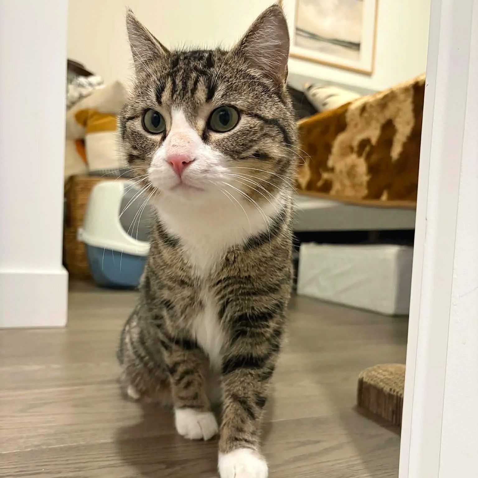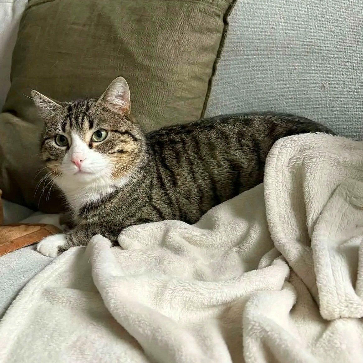 Adoption Fee: $350Meet the world’s easiest, most lovable cat. Truly the total package — dog friendly, cat friendly, kid friendly, and everyone’s favorite snuggle buddy. He comes running for cuddles, melts into your arms, and lives for cozy moments on the couch. He might tuck himself away for a quiet nap now and then, but call his name and he’ll happily pop out for snuggles. If you’re looking for a best friend who just wants to love and be loved, this is your guy.
