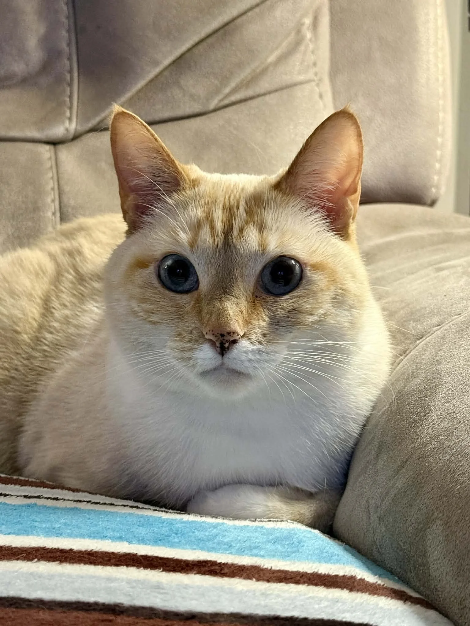 This stunning 6-year-old Siamese sweetheart is ready to find her forever home. With her soft beige coat and striking blue eyes, she’s as gorgeous on the outside as she is gentle on the inside.