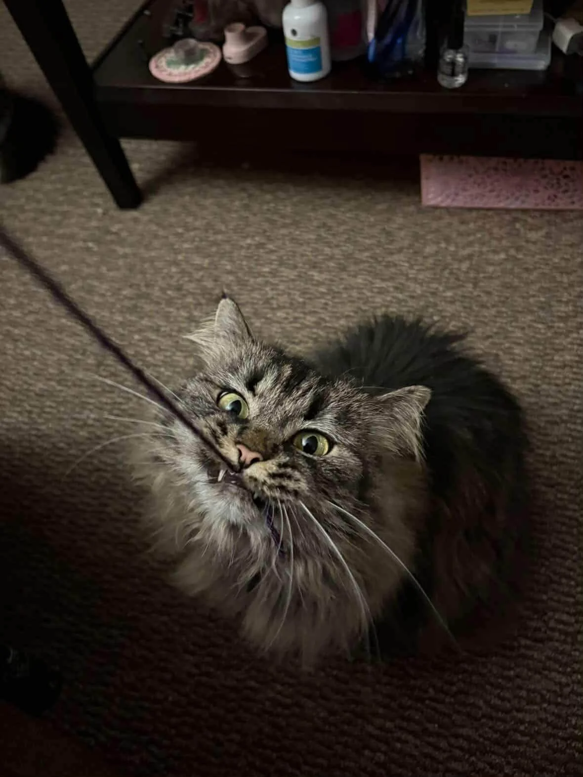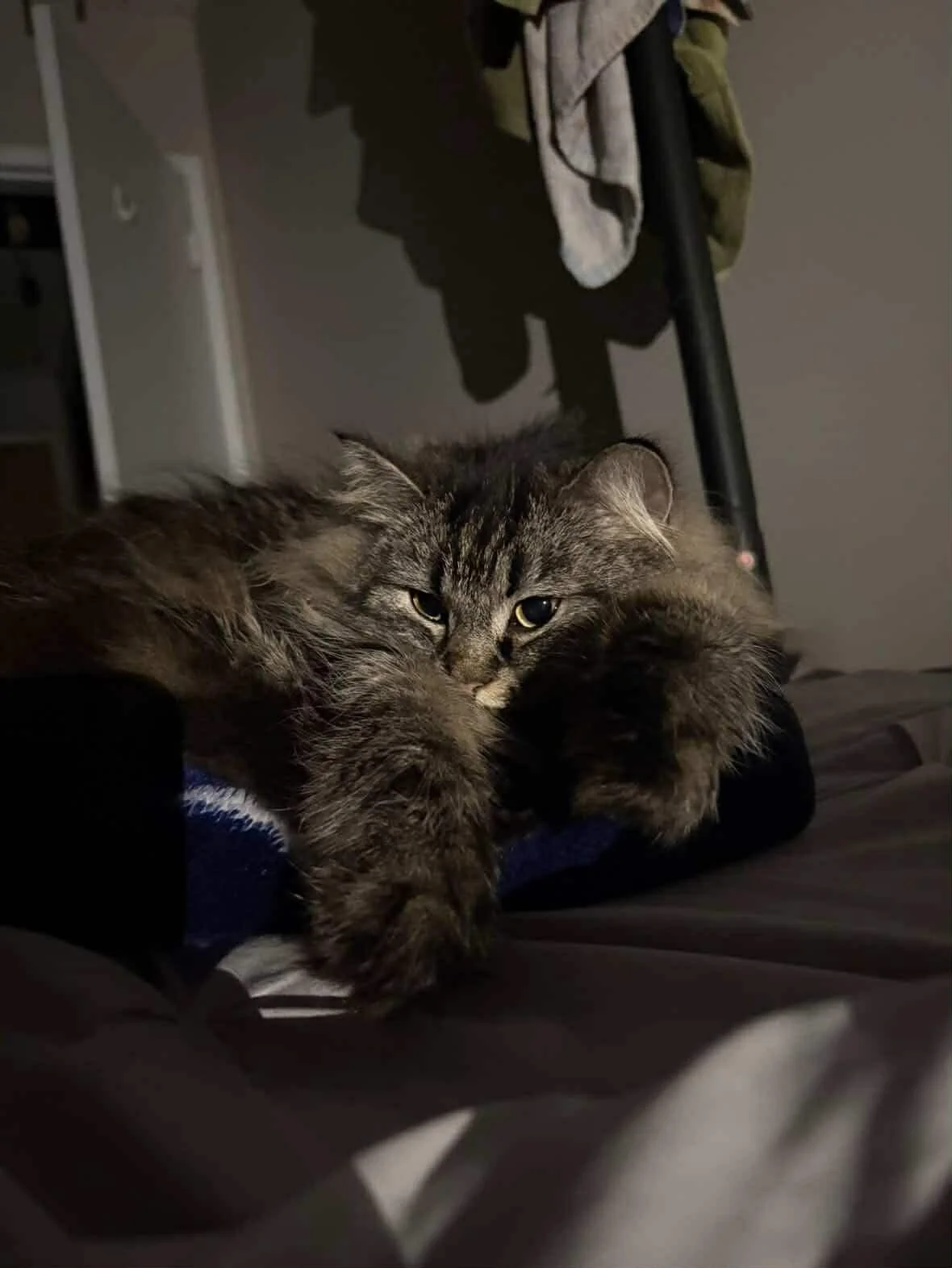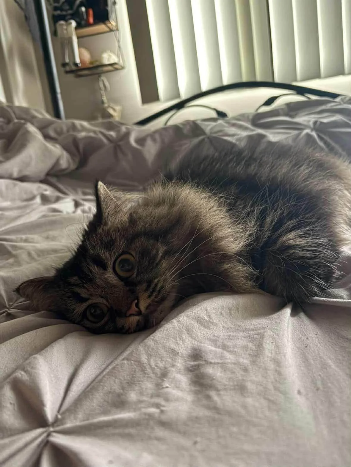 Ruby is a very special lady. She can take some time to trust but when she does it’s incredibly rewarding. Ruby will tolerate cats, but definitely does not mind being solo. Shes the best way to end and start your days because whenever you’re in bed she’ll curl up on your chest and purr. She’s also a spunky, playful lady. Ruby does have boundaries around being touched, but she lets you know when she is done. When Ruby goes off to her forever home, her emotional support Christmas stocking must go with her, she brought it with her all the way from Manitoba and loves to carry it around and meow. Ruby is such a lovely lady full of personality, anyone would be lucky to have her!