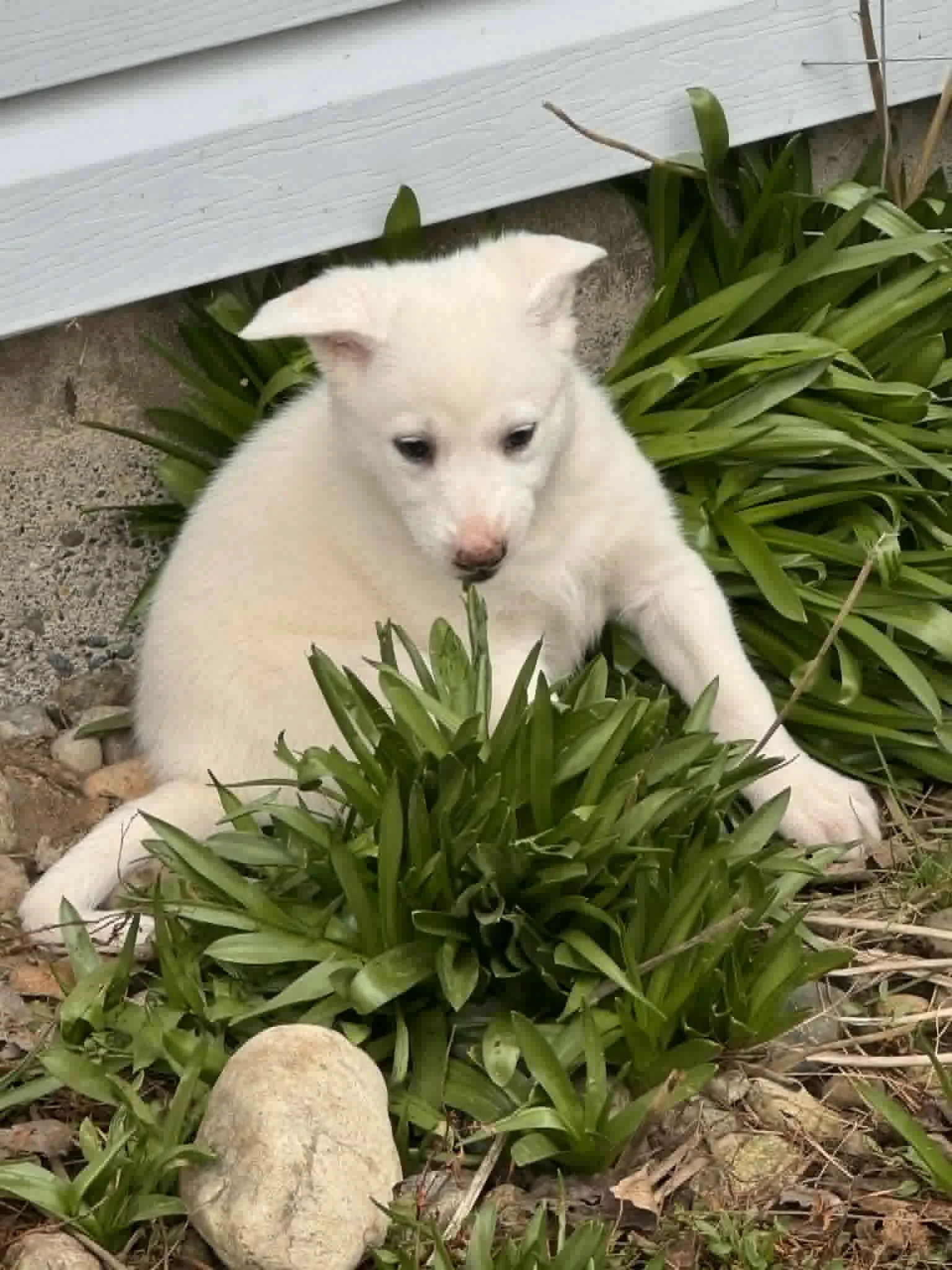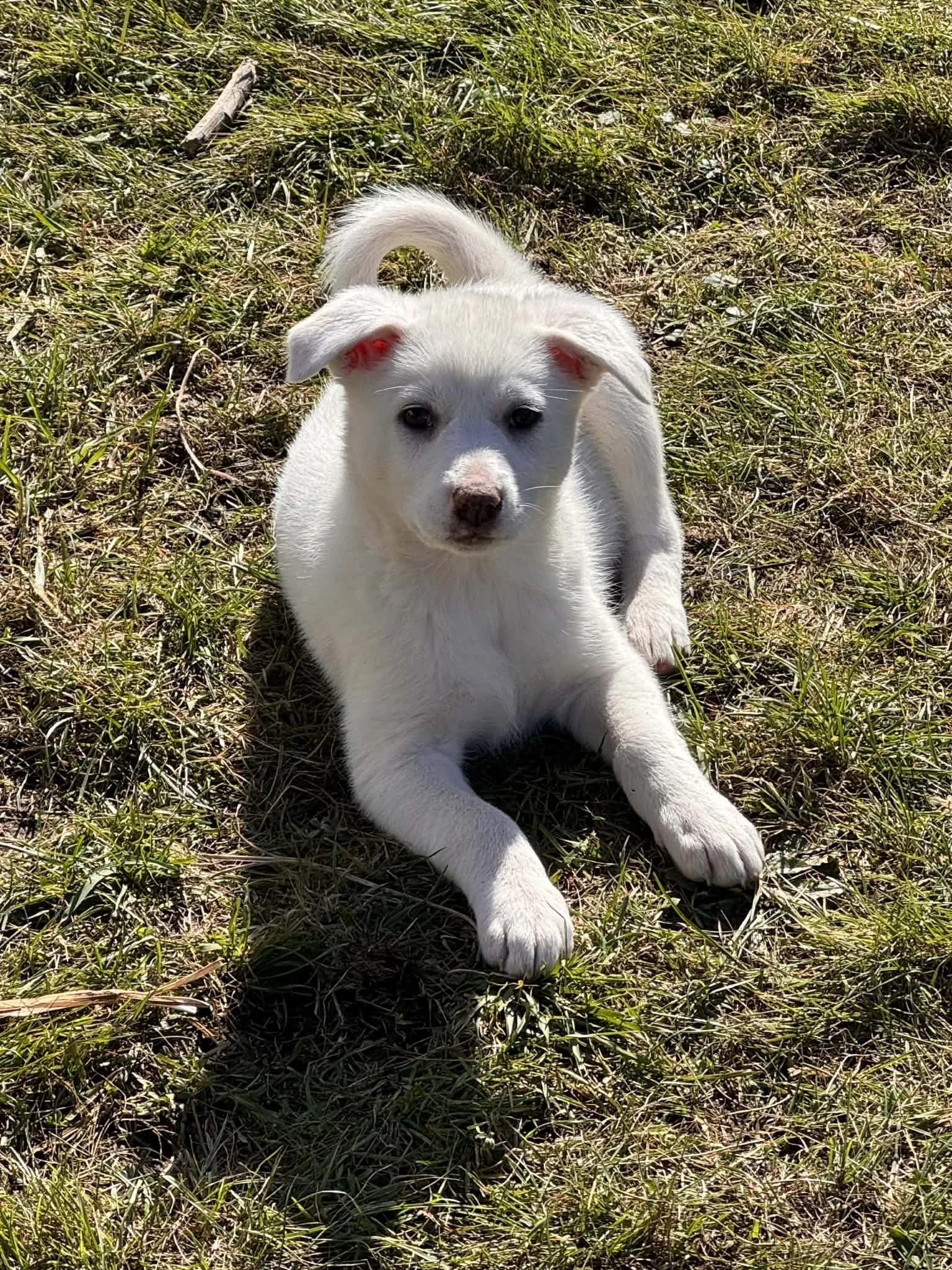 Foxy is the biggest of her litter. She has a very funny and playful energy. She is very independent. Went outside running around and will find places just to curl up and rest. But she will also curl up in your lap or beside you and snuggle lots. She’s mostly house trained and pee pad trained if inside too long. She has been around cats and other dogs and thinks she’s a big dog at times when she plays.