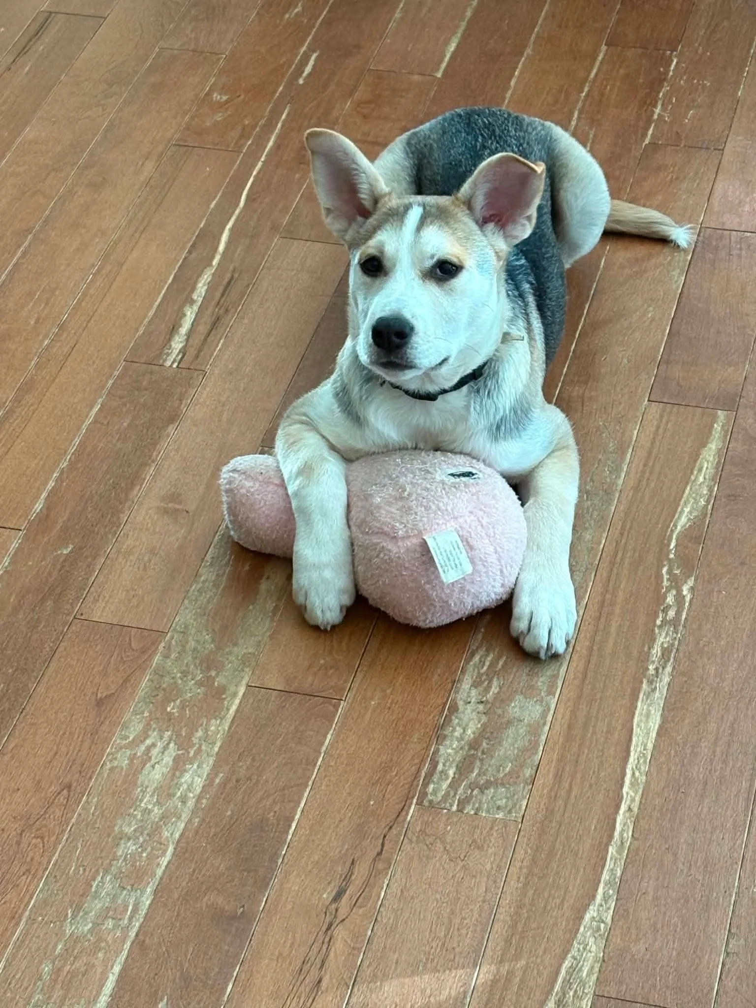 She loves to play (especially fetch… she usually brings it back 😉) and then crash hard after. Like any young puppy, she can get a bit jumpy or nippy when she’s overexcited, but she’s learning and improving with consistency.