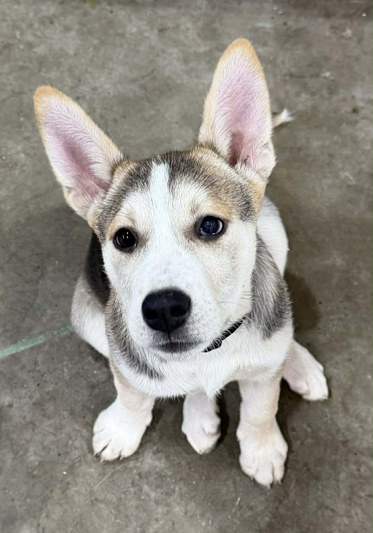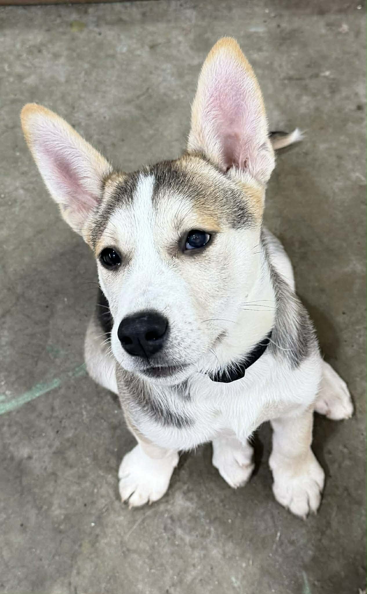 Golden is a happy, playful pup who’s been thriving with one eye (likely since birth) — it doesn’t slow her down at all. She’s crate trained, sleeps through the night, and already knows “sit” and “lie down.”
