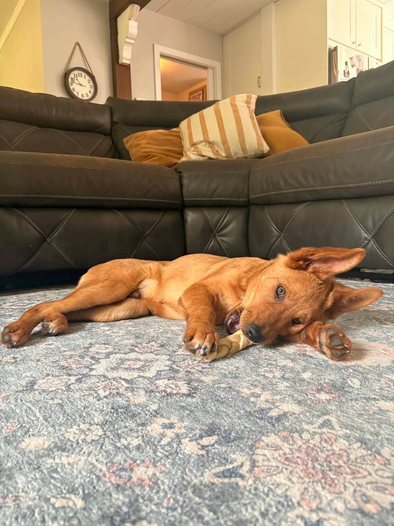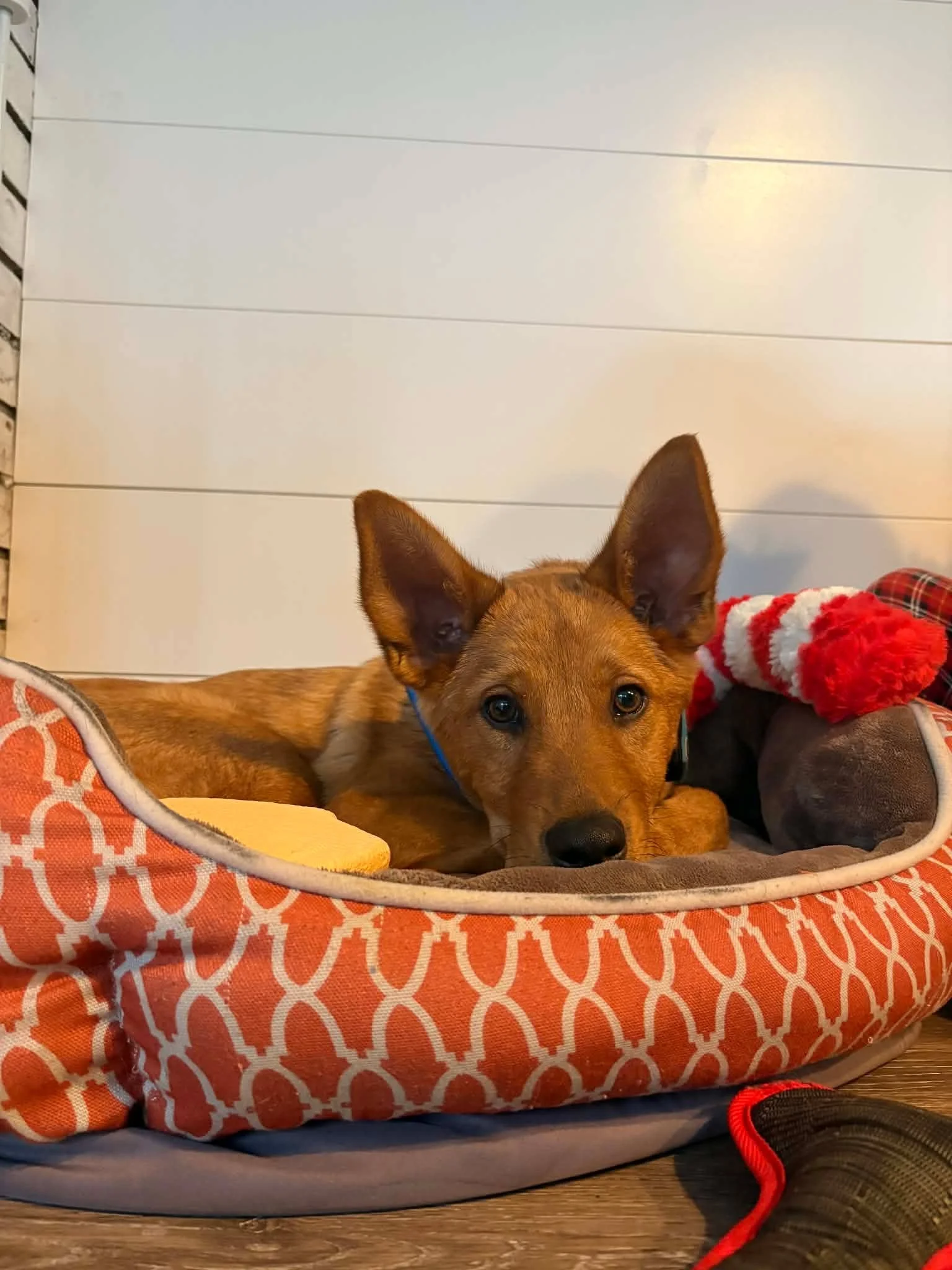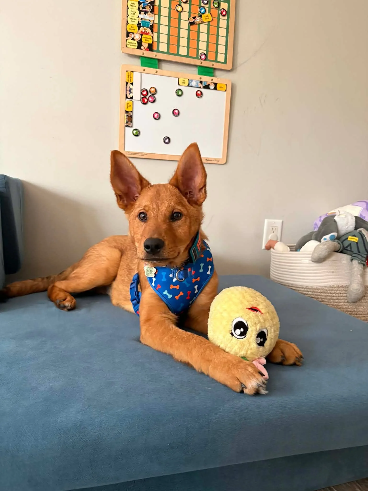 At home, Jigsaw is a gentle, easygoing pup who loves playing with his favorite stuffies and relaxing near his people. Outside is where his curious side shines—he’s full of energy, adores playing with kids, and never misses the chance to explore the forest (always on the hunt for the perfect stick).