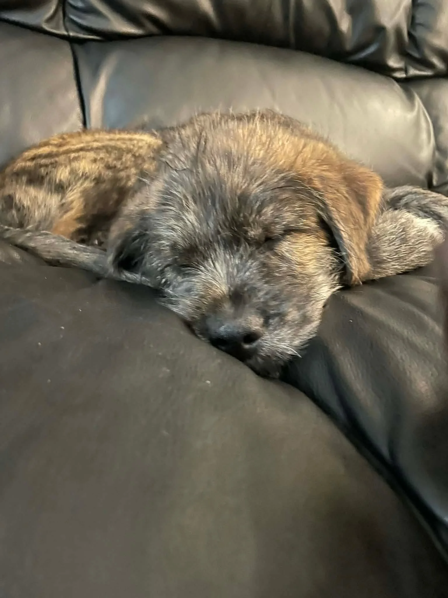 Meet Simon the sweetheart! Simon takes after his Momma in looks and has this beautiful soft, sort of shaggy coat. He has big paws and is a unique brindle colour. Simon is a chill puppy. His favourite activity is hanging out with his foster family and receiving all the love and attention he can get from humans. He follows his foster family around the house. He is a loyal boy. He enjoys playing with toys and roughing around with his dog-brother, but is equally or more excited to curl up for a nap next to his fosters.