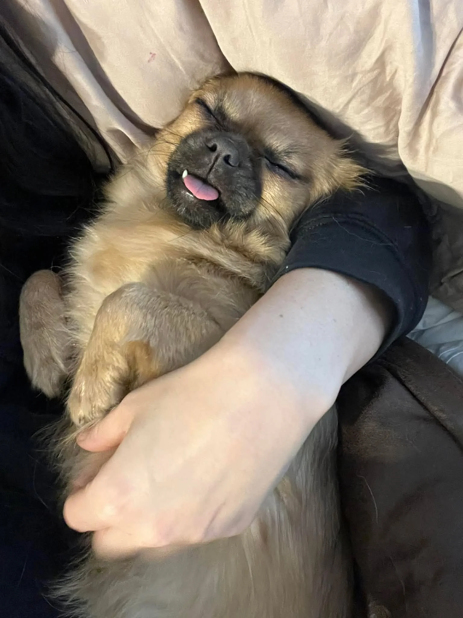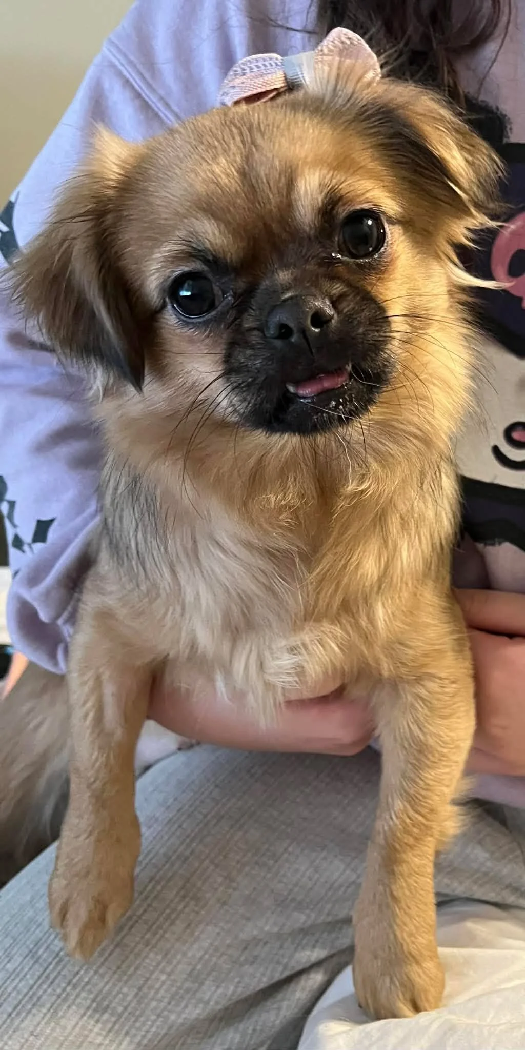 Sundae is a tiny little sweetheart (around 8–10 lbs) with the cutest underbite that leaves her tongue adorably peeking out all the time. It’s one of her most charming features and always makes people smile.