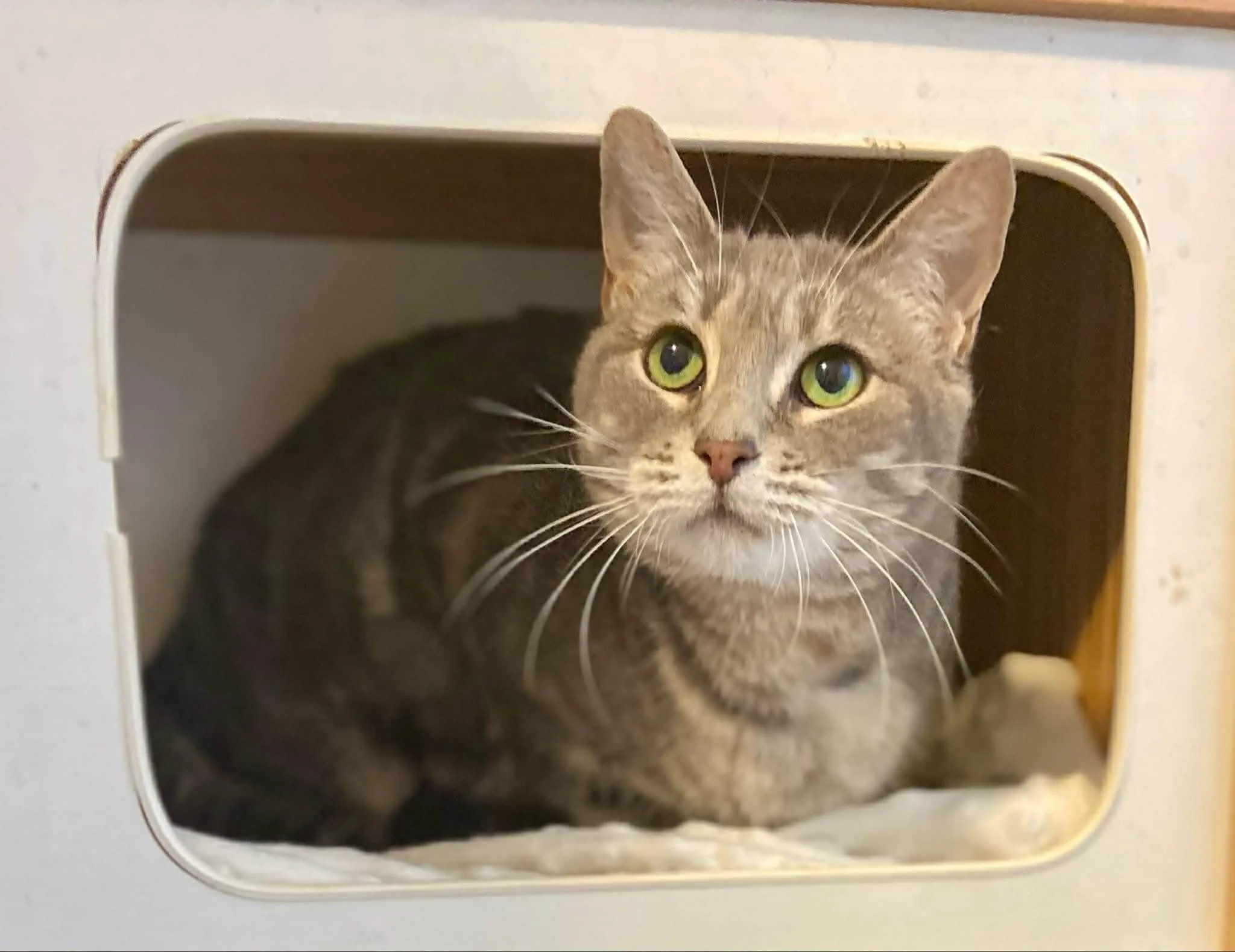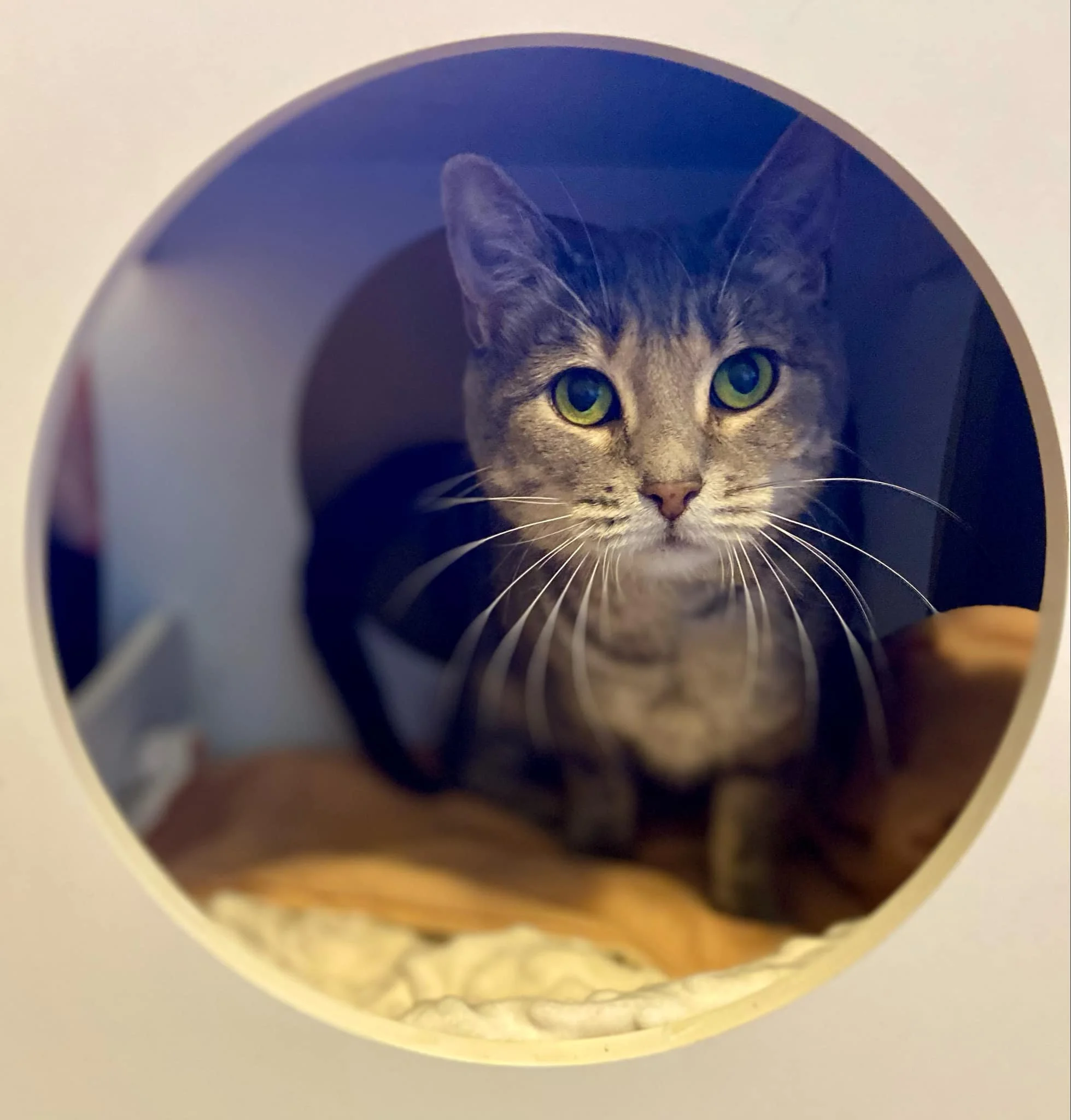 Life has not always been easy for Miss Sweet Potato. Her past has made her cautious, but her resilience shines through in the way she is learning to trust again. She takes her time exploring the world, carefully observing with her big, thoughtful eyes before making her move. She loves a cozy cubby where she feels safe and secure – and will warmly welcome you into her little sanctuary once she trusts you.
